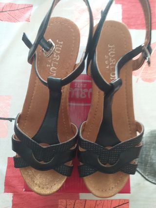 Sandalias marca Farrutx. Tacón madera Precio original 216