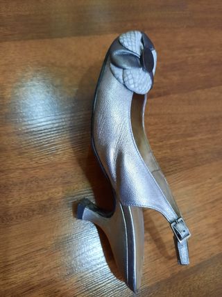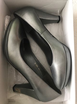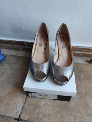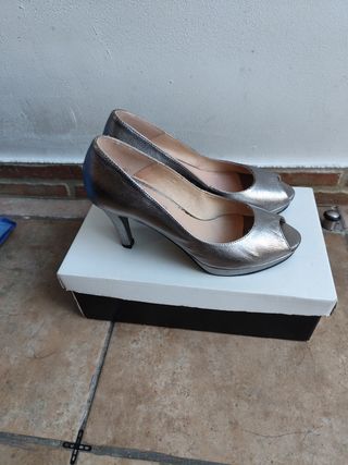 Zapatos de tacón plateados con la punta descubierta talla 37 con poco uso