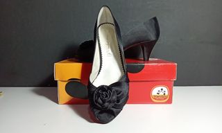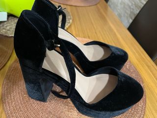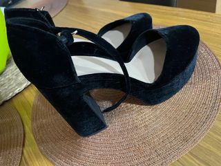zapatos de tacón color negro, aterciopelados. Casi no se han usado. Perfecto estado.