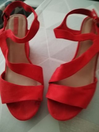 Bonitos zapatos con un poco de plataforma, muy cómodos, no son rojos, es color coral