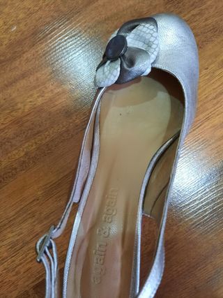 Zapatos piel plateados entretiempo Again & Again. N°38. Tacón bajo. Muy cómodos.