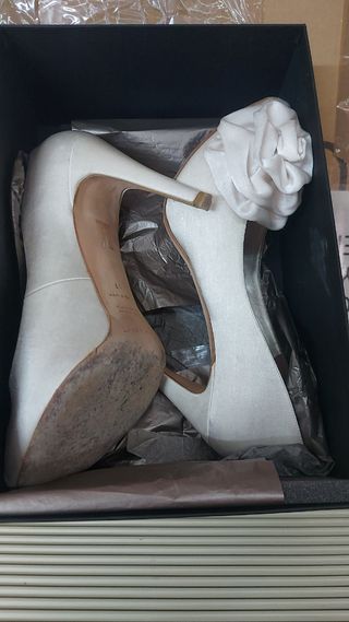 Tacones en perfecto estado, como se aprecia en las fotos. Hechos en España. Usados únicamente para una comunión (se puede ver en la suela que no tienen casi uso). Talla 39, de coloe beige o crema. A mi me costaron 90€ y estan nuevos.