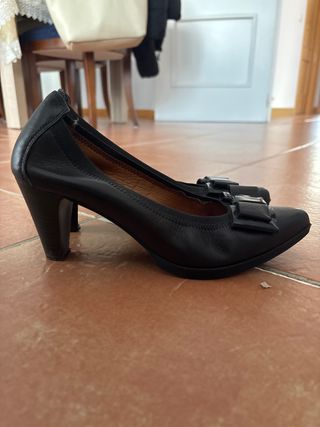 Zapatos de vestir negros de la marca Pitillos, en excelente estado. - Diseño elegante con tacón bajo. - Material exterior de piel. - Suela antideslizante.