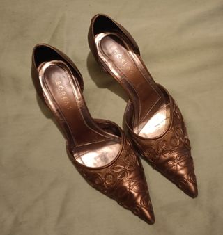 Zapato de punta color champagne, tacón aguja, 8cm aprox. Quedan muy finos.Talla 36. Nuevos!!! los estrenas tú!! vendo por mudanza