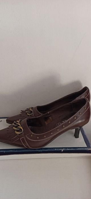 Zapatos tacón piel marrón -talla 39
