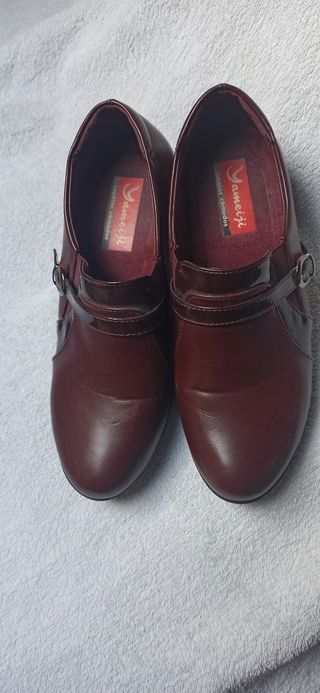 Zapatos de piel interior y exterior, tienen un brillo cómo si fuese charol. Son muy cómodos. Talla 40