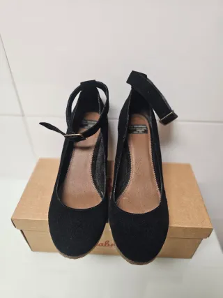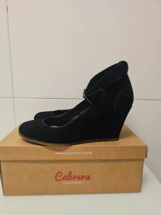 Elegantes zapatos de cuña con pulsera. - Material exterior de antelina. - Cierre de pulsera ajustable al tobillo. - Diseño clásico y muy cómodos.