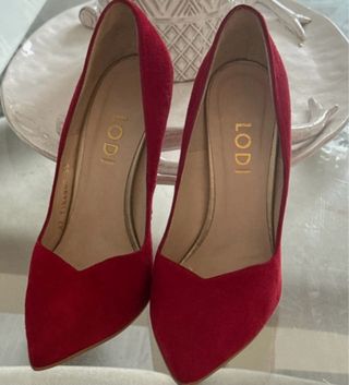 Elegantes zapatos de tacón de la marca LODI. - Material: Terciopelo. - Color: Rojo burdeos. - Talla: 38.