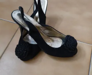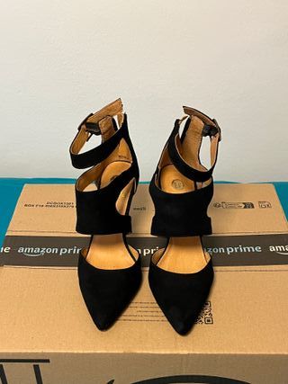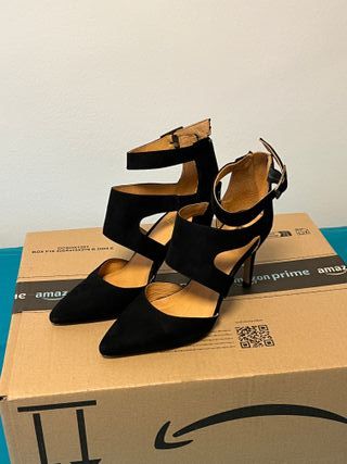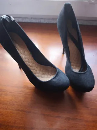 Elegantes zapatos de tacón negros. - Material de ante. - Diseño clásico. - Tacón fino. - Usado 1 día.