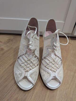 Elegantes zapatos de Christian Rossi, perfectos para una ocasión especial. - Diseño de encaje delicado. - Tira trenzada en la parte delantera. - Punta abierta. Nuevos, sin uso ya que la boda nunca se celebró. Precio original: 150€
