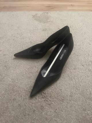 Escucho ofertas Elegantes zapatos de tacón de color negro. - Diseño de punta fina. - Tacón alto y estilizado.