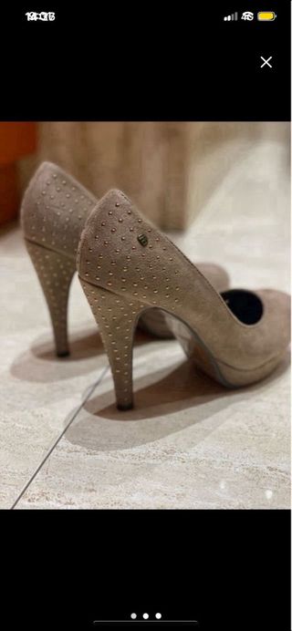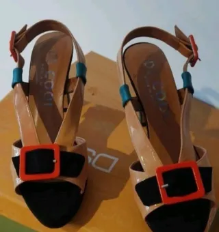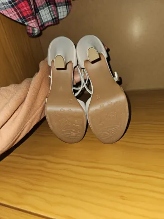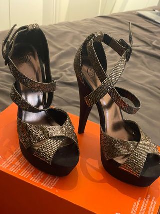 Elegantes zapatillas de tacón alto con un diseño brillante. - Tiras cruzadas en la parte delantera. - Cierre de hebilla en el tobillo. - Plataforma delantera. - Detalle de logo en la plantilla. la marca no es “add” es D, pero no estaba la opción en wallapop. La recodiga de los zapatos van por parte del comprador en el area de Alfonso X.