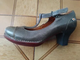 Elegantes zapatos grises con un diseño de tira y tacón. - Material exterior de piel. - Suela de goma en contraste. - Cierre de hebilla ajustable. Muy cómodos incluso si no sueles llevar tacones