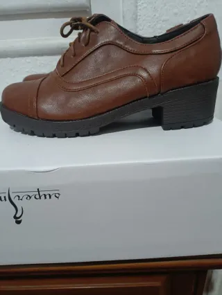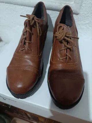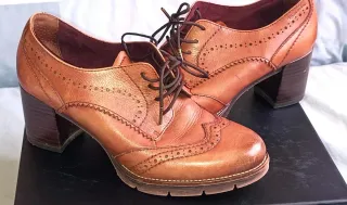 Zapatos de ante con plataforma y cordones. usado un par de veces. - Diseño con perforaciones. - Tacón grueso. - Estilo Oxford.