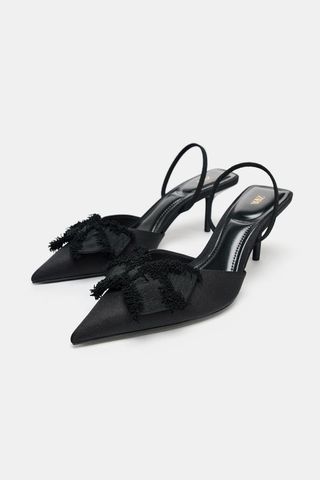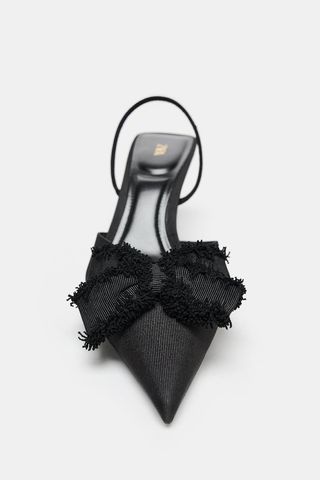 Elegantes zapatos de tacón de Zara. - Diseño de punta afilada. - Adorno de lazo con acabado deshilachado. - Correa elástica en el talón.