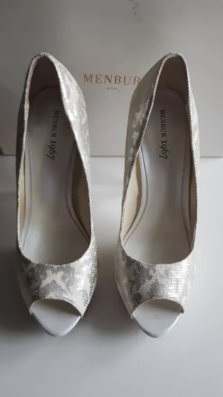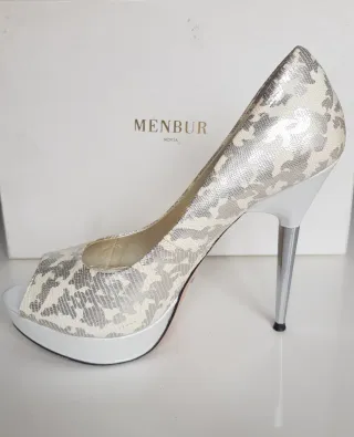 Zapato tacón Menbur Novia Plata/Blanco