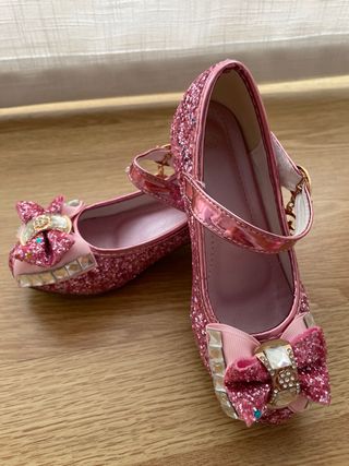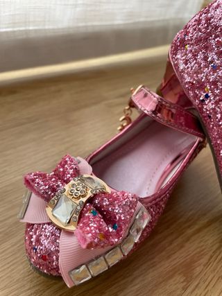 Zapatos de princesa de brillantes, talla 28 ( aunq cm tienen tira de velcro se ajustan desde el 27 al 28 sin problema) Como nuevos!