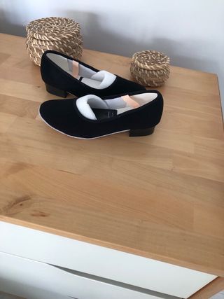 Zapatos de baile negros para niña. Sirven para ballet, baile de salón y varias disciplinas. - Diseño elegante y cómodo. - Tacón bajo y seguro. - Material suave al tacto.