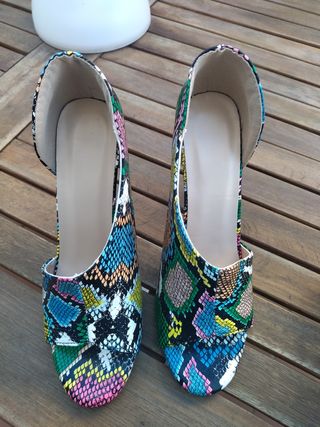 Zapatos tacón multicolor talla 38. Es marca Shein.