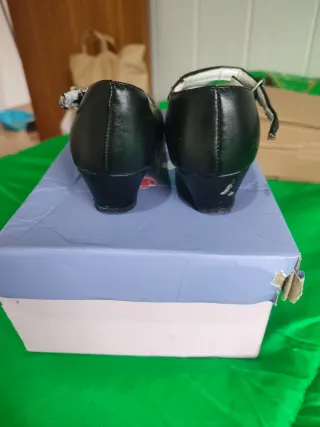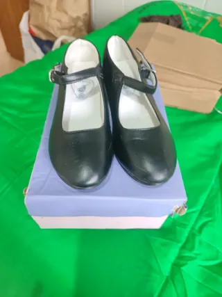 Zapatos negros de baile flamenco, ideales para fin de curso o actuaciones. - Tacón para baile. - Cierre de hebilla.