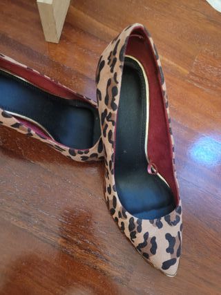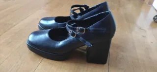 zapatos de tacón de la marca Pull&Bear. Esta desgastada donde la hebilla .Tacon de 10 cm.Usado muy pocas veces.