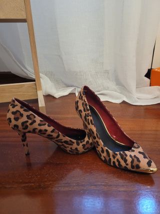 Preciosos tacones de estampado de leopardo. Son ideales para cualquier ocasión especial. - Son de tacón bajo. - Están hechos de pelo. - Son de color marrón y multicolor.