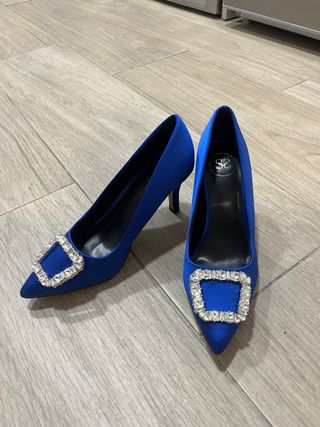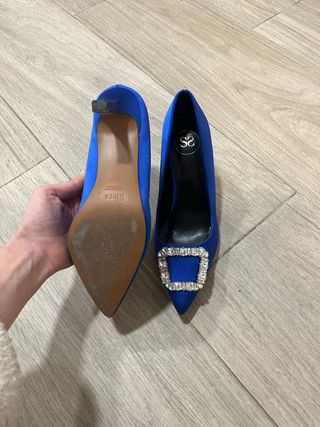 Zapatos de tacón con plataforma, color azul. Número 35.