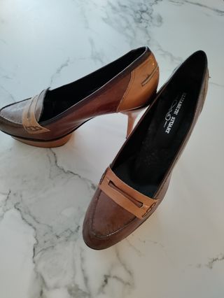 zapatos Loewe en color marrón sin usar casi, tienen un tacon de 10 cm. La talla que pone es 36, pero da un poco mas de talla, como una 36,5