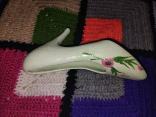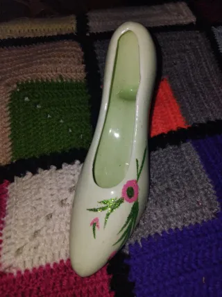 Bonito y antiguo Cenicero con forma de zapato de tacón de porcelana, ideal como pieza decorativa. Presenta un diseño pintado a mano Es de porcelana francesa de la marca Silvestre, como se ve en las últimas fotos. Mide 10 cm. Nuevo