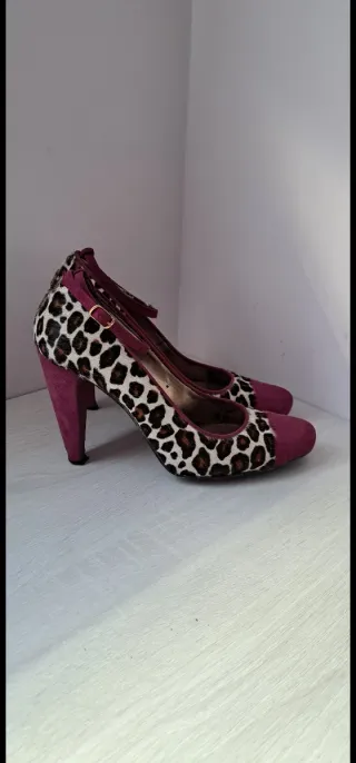Zapatos Albano tacón estampado leopardo y morado