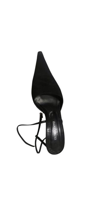 Elegantes zapatos de tacón Gloria Ortiz en color negro, perfectos para ocasiones especiales. - Diseño de punta fina. - Tira fina cruzada al tobillo. - Tacón de unos 7 cm