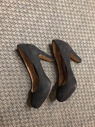 Zapatos talla 38, modelo urban de la marca MIMAO. Son de ante gris, preciosos y extremadamente cómodos. Se han usado únicamente una vez, están nuevos. Zapatos de tacón alto fabricados en piel de ante, ideales para llevar en todo tipo de eventos como bodas o bautizos. También se pueden usar diariamente en otros momentos de ocio. El modelo Urban cuenta con un tacón alto, pero ancho y estable, y testado a lo largo de los años. Gracias a su altura de 8,5 cm y a su diseño de la puntera, la figura se estiliza mucho. Aunque tengan una altura elevada, estos zapatos de tacón son muy cómodos para llevar durante horas. Cuentan con las planti