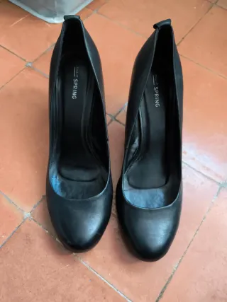 Elegantes zapatos de tacón alto de la marca Mango. Número 38 - Diseño de punta afilada. - Corte tipo salón con escote pronunciado. - Tacón fino y alto.