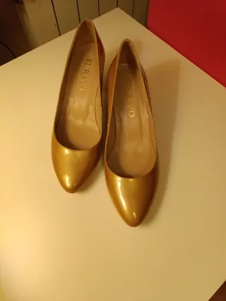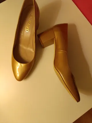Elegantes zapatos de salón de charol.Piel - Marca: EL RAYO - Color: Dorado - Acabado brillante