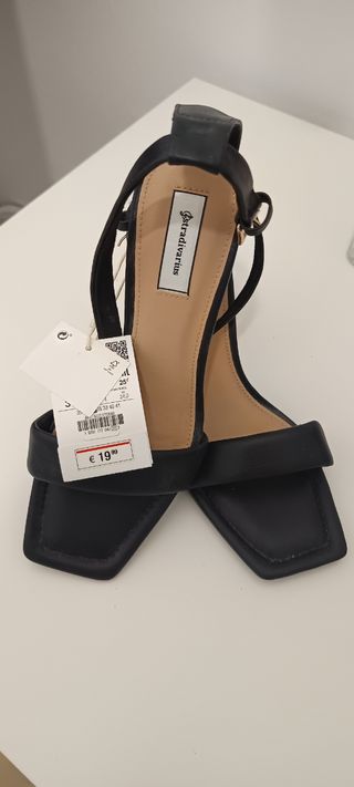 Preciosos zapatos de tacón de stradivarius, en color negro y talla 37. Son nuevos y tienen un diseño elegante y sofisticado. - Tacón alto. - Diseño de tiras. - Material: piel sintética.