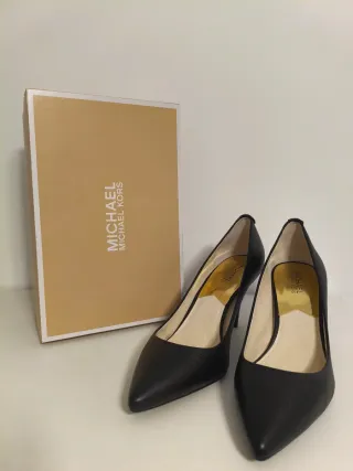 Elegantes tacones Michael Kors en color negro. - Diseño de punta fina. - Tacón de aguja.