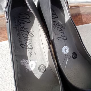 Zapatos de la marca Mustang en color gris. - Diseño elegante y cómodo. - Detalle de costuras. - Suela con logo de la marca. - Fabricados en España.