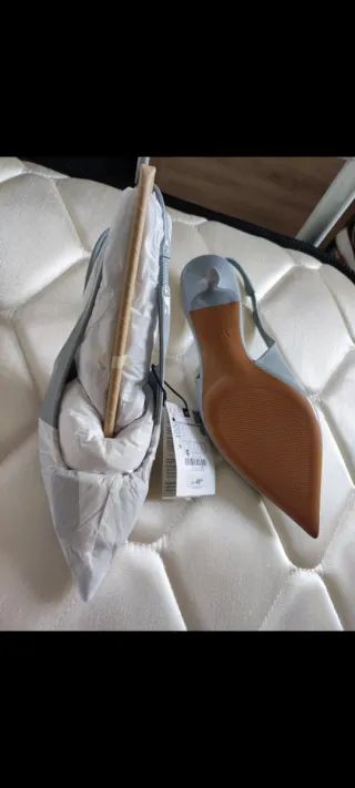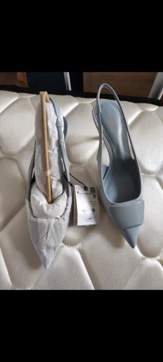 Elegantes zapatos de tacón de Zara con un diseño moderno y sofisticado. - Tira fina al tobillo con cierre de hebilla. - Punta afilada. - Tacón fino. Escucho ofertas razonables
