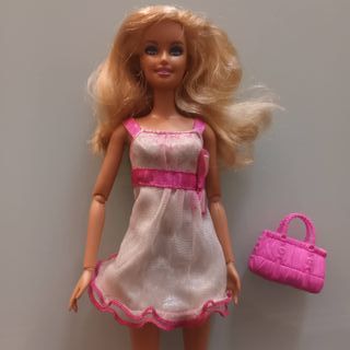 ⭐ Barbie Fashionistas “Sweetie” – versión articulada (2010) Línea: Barbie Fashionistas (primera generación) Sub-línea: Swappin’ Styles / Fashionistas articuladas Año: 2010 👉 Fashionistas “Sweetie” – Pink Dress Variant (2010) color del pelo rubio dorado rostro molde de 1998 maquillaje rosa suave cuerpo articulado 2009 Outfit típico: Vestido rosa metalizado muy brillante Parte superior tipo corpiño rosa fucsia Parte inferior rosa claro con textura o brillo Zapatos rosa fucsia de tacón bolso rosa #Barbie #Fashionistas #Collector #MuñecaBarbie #BarbieVintage