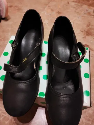 Elegantes zapatos negros flamenca tacon - Cierre de correa. - Diseño clásico.