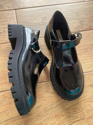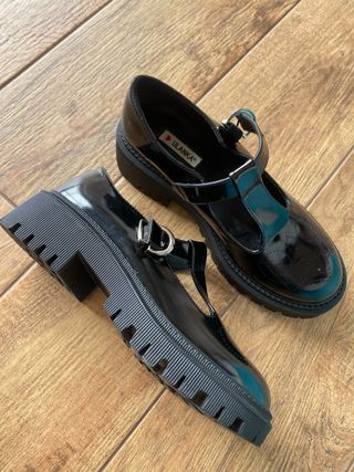 Preciosos zapatos negros de plataforma de la marca Ulanka. - Son de charol. - Tienen hebilla. - Estilo Mary Jane. - Tacón grueso.