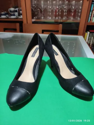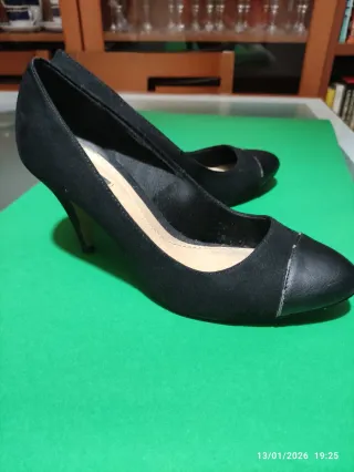 Se vende lote de dos pares de zapatos de tacón.poco uso cada par 8 euros los dos pares juntos 12 euros - Un par de color marrón con textura de cocodrilo. - Un par de color negro. - Talla 36 en los zapatos negros.