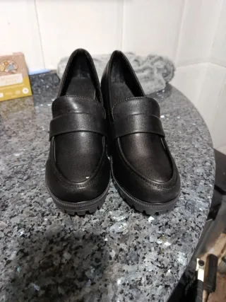 Elegantes zapatos negros con tacón grueso de 8 cm de alto A estrenar.