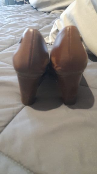 Elegantes zapatos de tacón con cordones, confeccionados en ante.Divinos y femeninos zapatos de tacón efecto ante,de cordones.Llevan una pequeña plataforma que les hace muy cómodos .color topo.37.Puestos una vez real.Están nuevos. - Diseño de media caña. - Detalle de picado en la zona del empeine. - Plataforma delantera.