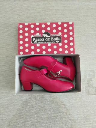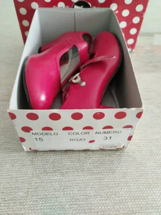 Zapatos de baile estilo flamenco en color rosa brillante. -numero 31. - Cierre de hebilla. - Tacón de bloque.