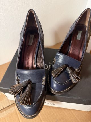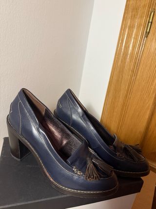 Elegantes zapatos de piel en tono azul, con un diseño sofisticado y detalles de borlas. - Material: Piel - Color: Azul - Detalle: Borlas decorativas - Tacón: Sí