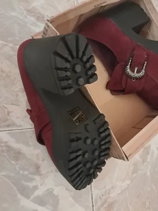 Elegantes zapatos de tacón en color rojo. Suela prácticamente nueva, sólo hay que ponerle las tapas de los tacones, ya que al ser finos se desgastan pronto los que trae porque son de plástico. Pero los de zapatero duran más. - Diseño de punta fina. - Tacón alto y estilizado. - Material exterior tipo ante.