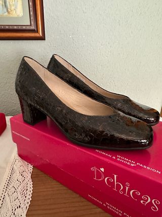 Elegantes zapatos de tacón de la marca Pitillos. - Diseño clásico y sofisticado. - Acabado brillante. - Tacón cómodo para el día a día.