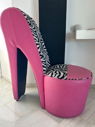 Original taburete con forma de zapato de tacón. - Diseño llamativo con estampado animal. - Aporta un toque divertido a cualquier espacio. SOLO VENTA EN PERSONA!! preguntar medidas por privado!!