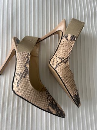 Elegantes zapatos de tacón con un diseño de piel de serpiente. - Acabado en piel de serpiente. - Tono beige y marrón.